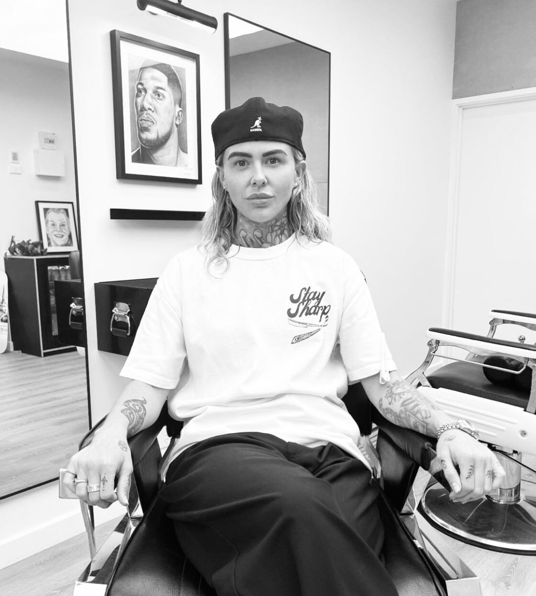 Say hello to Nadine, our Irish wizard of style with a flair for creative cuts and a soft spot for big cities and tiny dogs. Originally from Dublin, she’s got a background in classic barbering, think high and tight fades, but her journey has taken her into the world of softer, more fluid haircuts. Mullets, mod cuts, scissor work, soft tapers… you name it, she nails it.